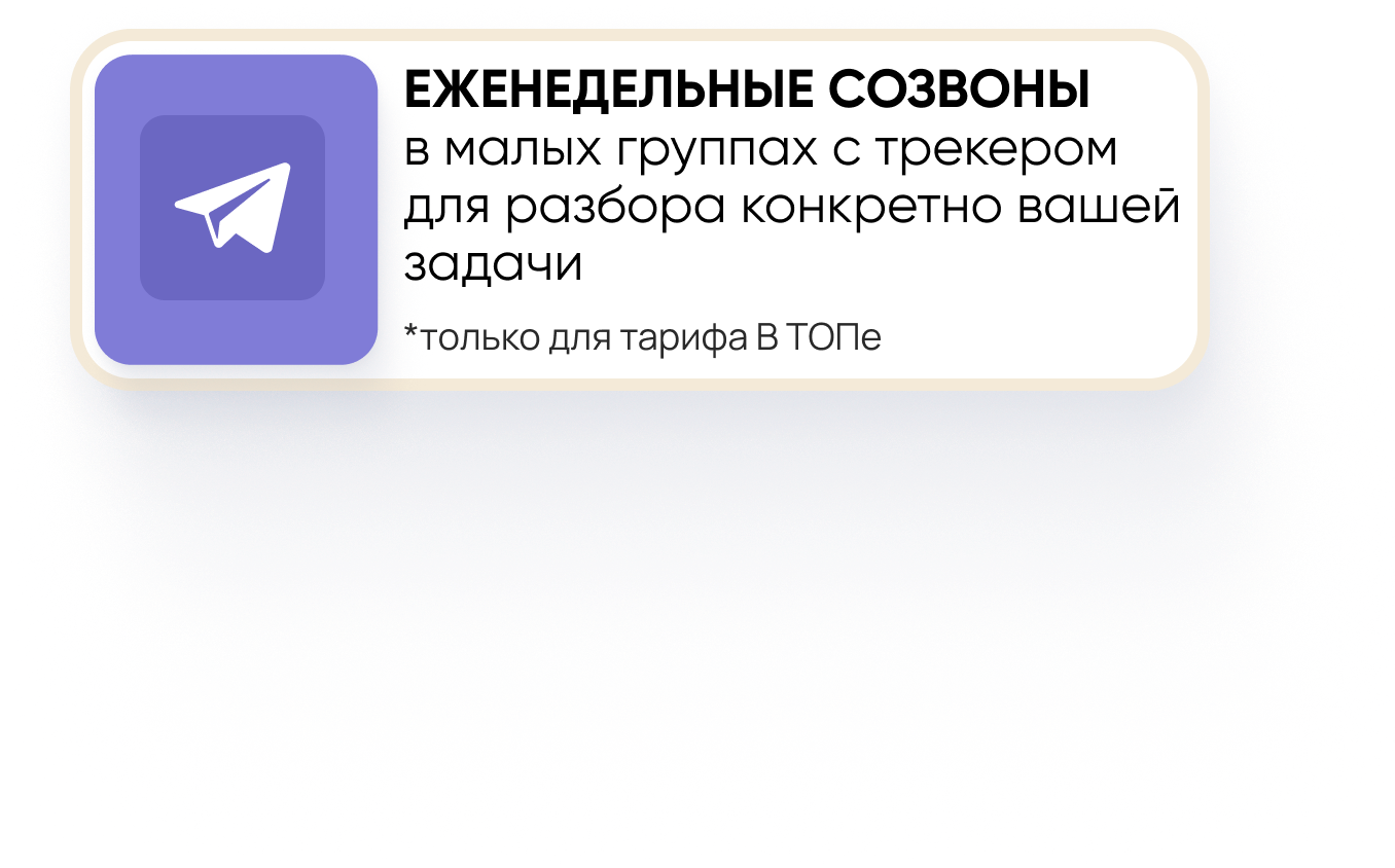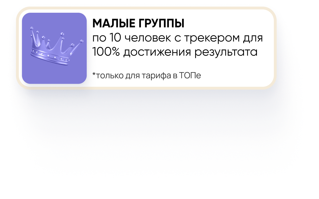 • Мини-группа до 10 человек с трекером, который ведёт вас до результата