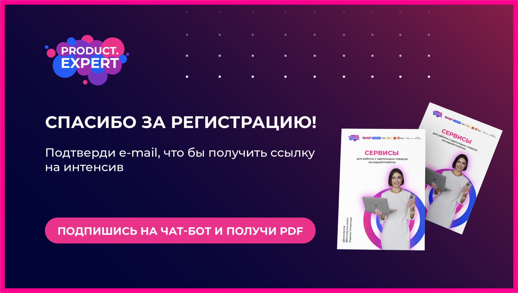 Подписывайтесь на закрытый телеграмм бот программы PROUCT.EXPERT и получите в подарок pdf–файл: